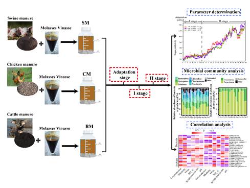 甘蔗糖蜜酒精废水是以制糖副产物糖蜜为原料,在发酵生产酒精过程中产生的高浓度有机废水,具有产量大、污染物浓度高、难处理的特点,是广西甘蔗产业链上的堵点。本研究成果揭示了以不同动物粪便为混合原料对糖蜜酒精废水厌氧处理的影响及微生物学机制,为研发高效处理糖蜜酒精废水工艺提供了新的技术方案。