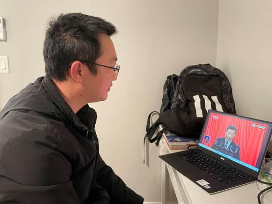 公司青年党员教师明振华在加拿大不列颠哥伦比亚大学访学期间收看党的二十大开幕会直播