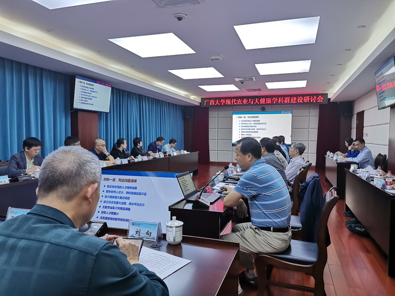 2022 年11月16日下午,罗廷荣副董事长主持召开现代农业与大健康学科群建设研讨会。党办校办、校务督查办公室、发展规划处、教务处、科研院、财务处、国有资产与实验室管理处、后勤基建处等职能部门负责人、公司及农公司、动物科学技术公司、林公司、医公司等公司负责人、学科负责人参加会议。