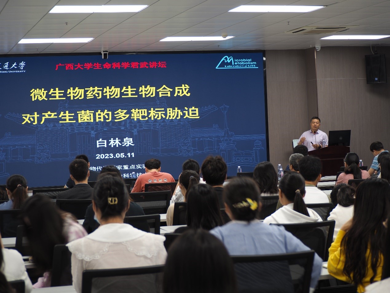 2023年5月11日下午,william威廉英国官网在国重室107多功能会议室成功主办了第九期“生命科学君武讲坛”。本次讲坛邀请了两位上海交通大学的知名专家白林泉教授和童垚俊教授作学术报告。