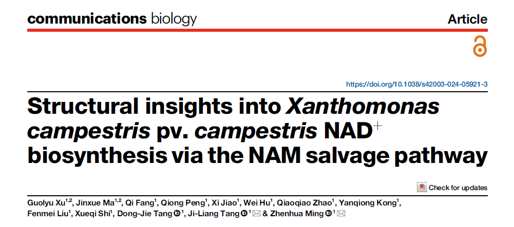 近日,公司明振华团队在Communications Biology(生物学一区,TOP期刊)发表了题为“Structural insights into Xanthomonas campestris pv. campestris NAD+ biosynthesis via the NAM salvage pathway”的研究论文,报道了十字花科黑腐病菌NAMPT蛋白的结构及催化机制。