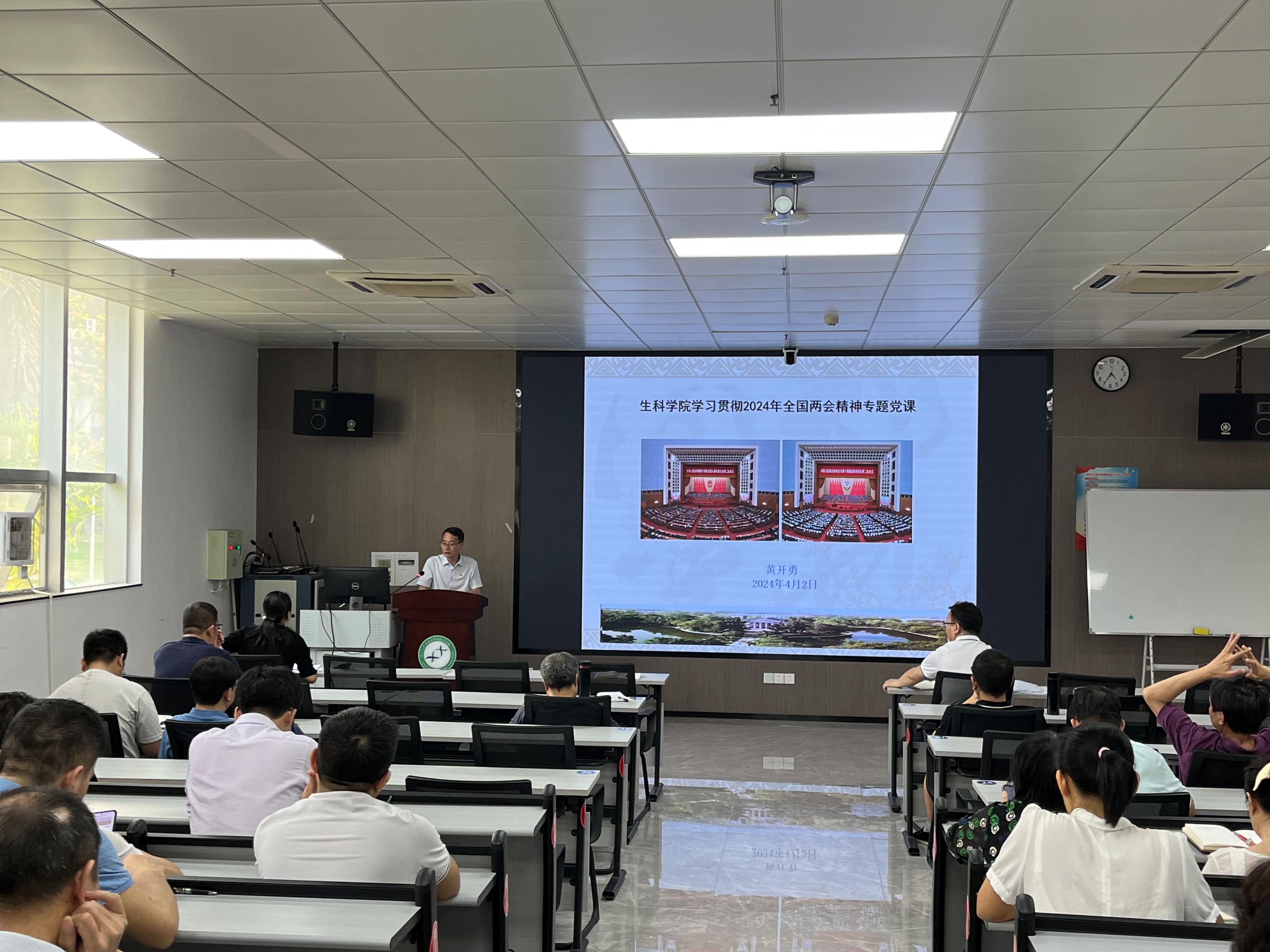 4月2日,公司在106室举办学习贯彻2024年全国两会精神专题党课。公司党委书记黄开勇主讲专题党课。