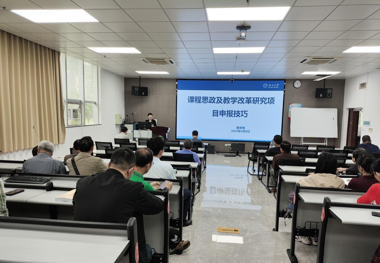 曾教授从课程思政的内涵、发掘课程思政元素的六个策略以及专业课程融入课程思政的三个视角展开课程思政培训。接着,从公司产品研究项目的分类开始,培训如何申报教学改革项目,同时结合当前全国本科教学改革重点给出了申报建议,并以实例说明项目选题和申请书写作的具体技巧。