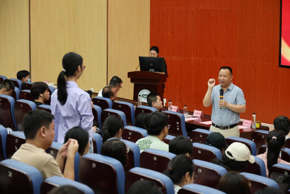 龙晓鹏员工以“企业家精神”为引入,结合自己开发木瓜酱菜产品的案例,分享了如何把“小木瓜”做成“大产业”的创业故事,用行动诠释了“优秀的企业家都是靠顽强奋斗和实践磨练出来的”,鼓舞同学们心怀目标、勇于尝试、不惧挫折,以扎实的学识筑牢未来的发展根基,以实干担当助推广西特色农业品牌建设和乡村产业振兴。
