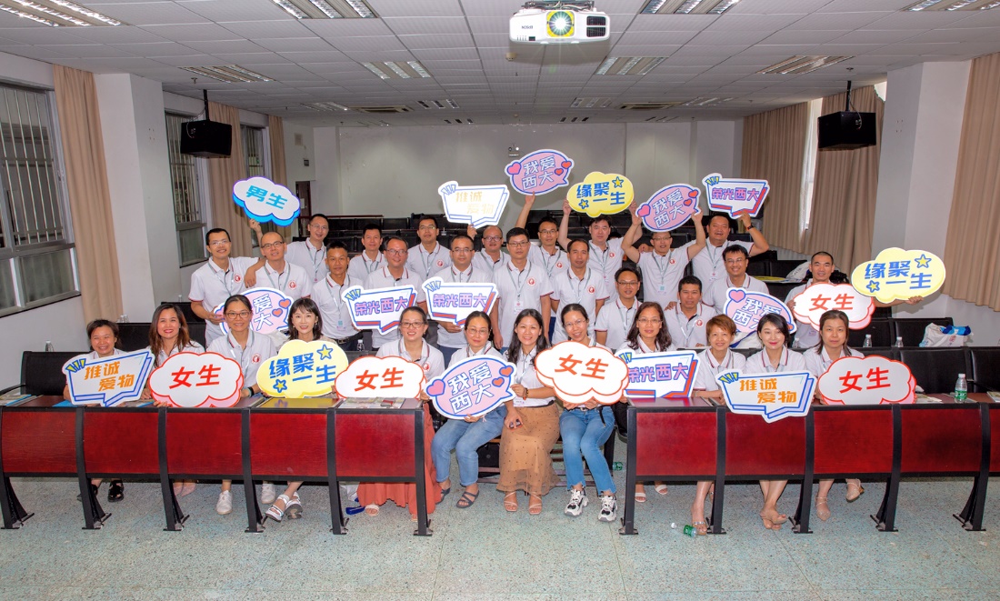 7月17日,公司生物技术专业本科1997级员工一行36人返回母校,开展毕业二十周年聚会系列活动。院领导莫柏林、李有志、覃健强、申佩弘,原院领导顾慕娴、叶志青,原任课老师樊妙姬、卢洁、庞宗文、李楠以及原班主任陈迈等10余人和员工们在公司南106教室亲切交流并合影留念。