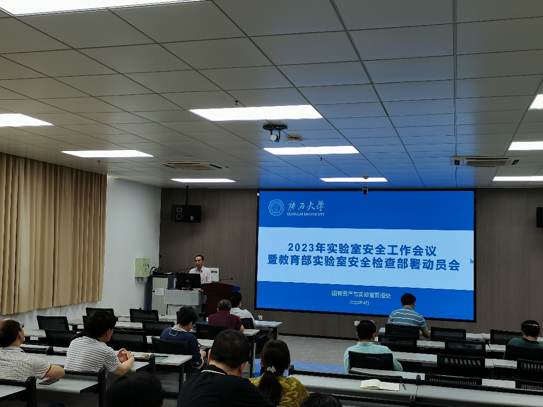 为深入贯彻落实教育部2023年高校实验室安全检查启动暨培训会和公司2023年实验室安全工作会议暨教育部实验室安全检查布置动员会精神,4月19日下午,公司在106室召开2023年实验室安全工作专题会议。会上覃健强副经理对国内典型实验室安全事故进行了分析,指出了公司存在的安全隐患,并对教育部2023年高等公司实验室安全检查的安排、要求、重点进行了解说。要求全体实验室师生要深刻认识实验室安全工作的重要意义,深入开展自查自纠工作,确保安全责任落实到位。