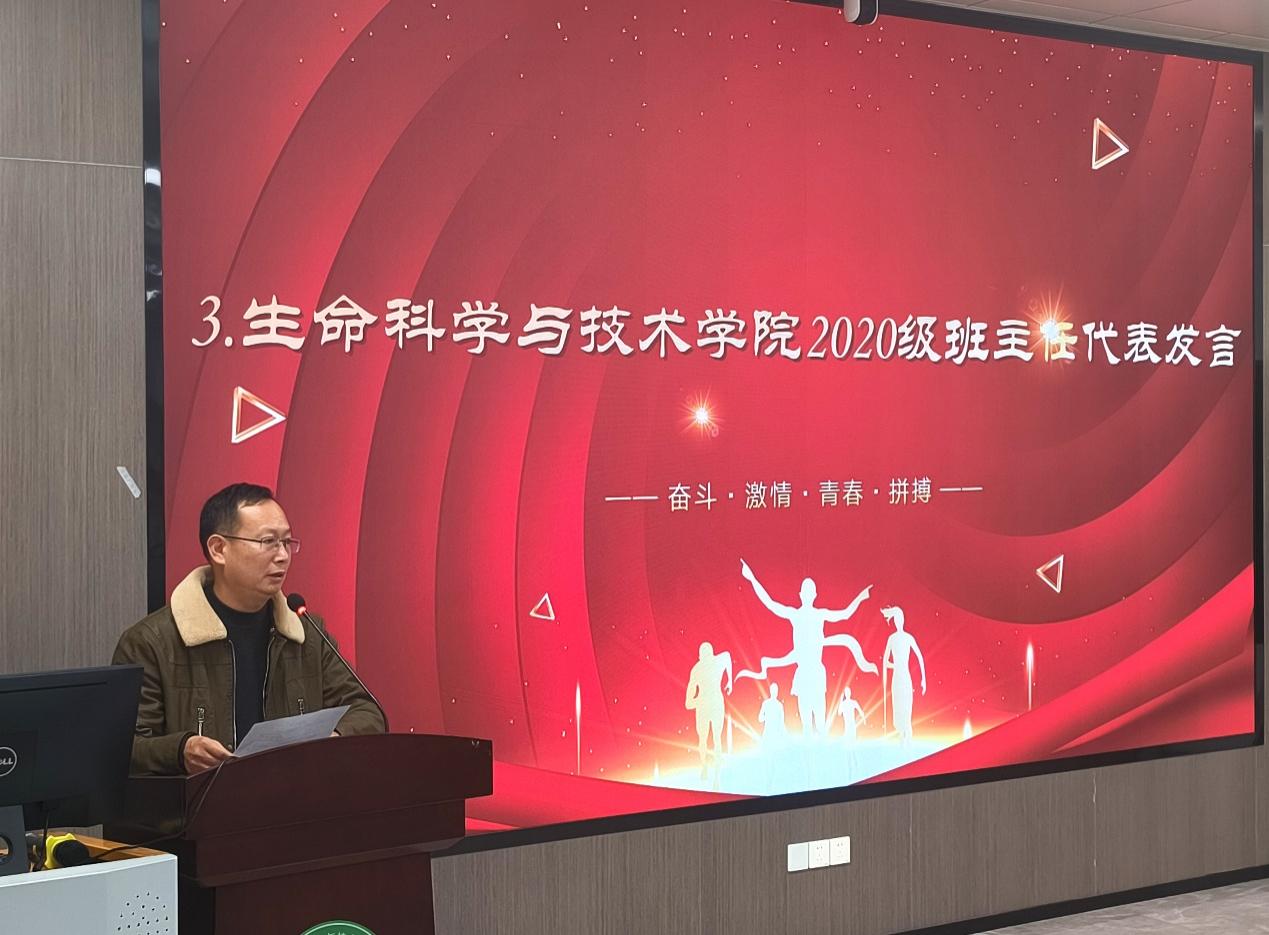 生命科学201班班长徐天峰作为员工代表发言,和大家分享了自己的考研心路历程。考研是一个长期积累并产出的过程,是一项大工程,他将不懈奋斗,坚持到底,刻苦学习,于千帆中乘风而起。