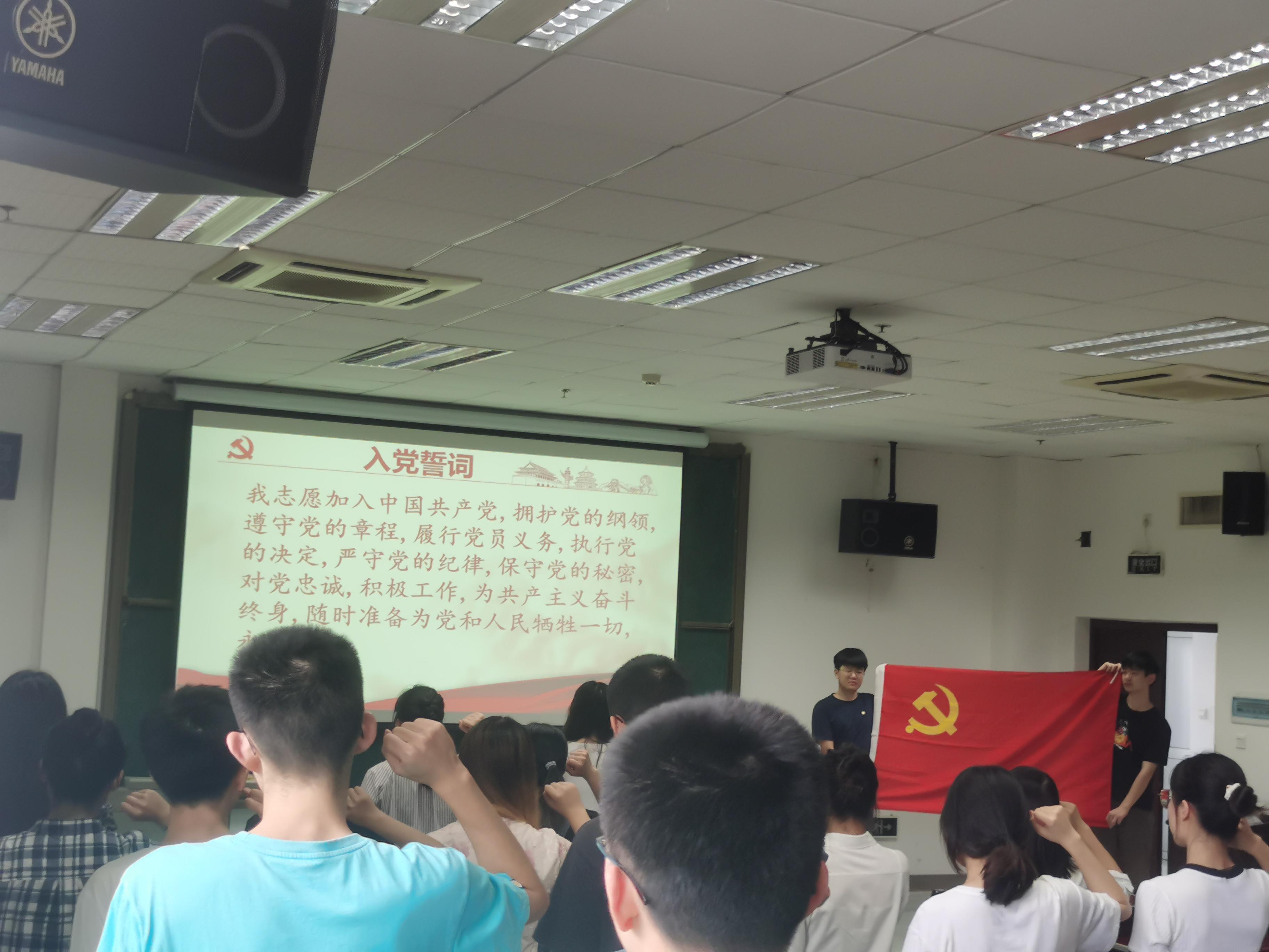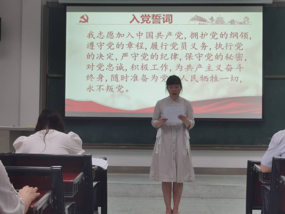 专题教育第一项是毕业生党员离校教育大会。会议伊始,团委副书记马奕首先带领全体参会党员重温入党誓词。全体党员起立,面向党旗,举起右拳,庄严宣誓:“我志愿加入中国共产党,拥护党的纲领,遵守党的章程,履行党员义务……”一句句誓词,让党员铭记党的性质和宗旨,激荡内心情怀。
