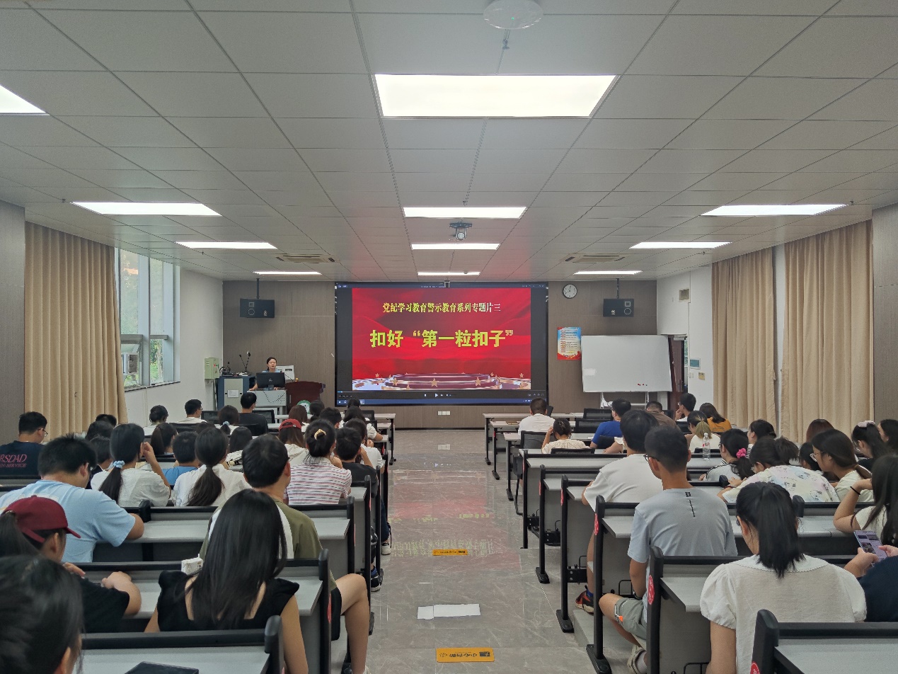 公司党委副书记、纪委书记覃文月以《守纪律、讲规矩,做新时代合格党员》为题作警示教育报告。覃副书记深刻剖析了一些员工党员违反校纪、触犯法律的典型案例,希望同学们以案为戒,严以律己。她指出,作为新时代的员工党员,要始终做好“三个表率”:一要做学纪知纪的表率,始终坚守政治信仰、坚定理想信念、严守政治规矩,当好坚定拥护“两个确立”、践行“两个维护”的排头兵;二要做明纪守纪的表率,严格对照党章,将遵守党规党纪、法律法规、校纪校规作为日常行为的准则,不断磨砺个人品格,塑造良好的道德品质;三要做担当作为的表率,争做学习标兵、科研标兵,以高度的责任感和使命感,共同营造一个风清气正、积极向上的育人环境。