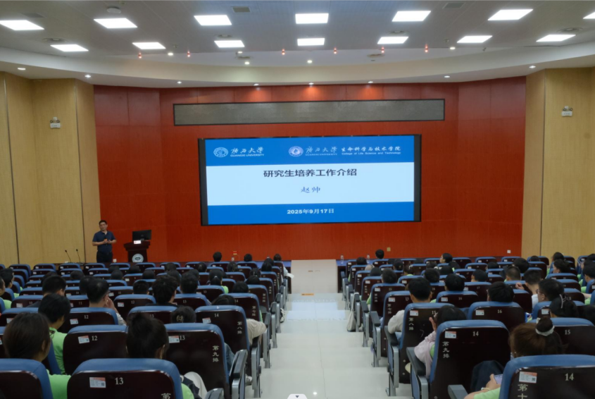 9月17日下午,卢洁副经理围绕学业规划与专业发展,系统梳理并详细解读了2025版培养方案中的六大课程模块,同时就推免、辅修通道、学业预警与帮扶机制等同学们普遍关心的问题进行了详细说明。他还结合广西独特的生物多样性资源禀赋与公司的重点研究方向,生动阐述了生物技术的广阔应用前景与产业发展趋势,帮助同学们建立对专业的整体认知与发展信心。
