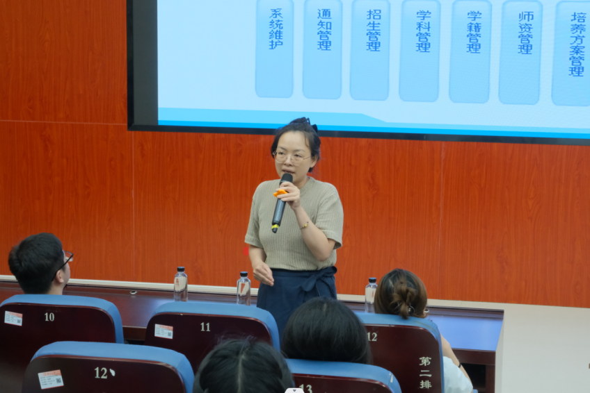 9月17日下午,赵帅副经理详细解读了公司产品方案,帮助同学们明确课程体系、学分要求和关键学业节点,为同学们科学制定学业规划提供了清晰的“路线图”。结合《科研失信行为调查处理规则》等文件,他特别强调了学术诚信是不可逾越的底线,是必须坚守的“零容忍”原则。随后,他系统介绍了师生互选的“双向选择”流程。