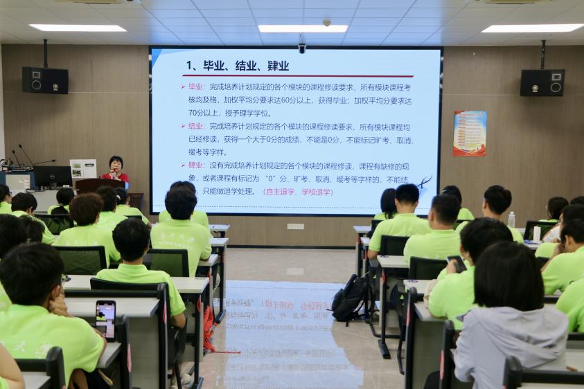 教学秘书莫柏立老师详细介绍了新生专属选课时段与全校补选期的具体安排,提醒同学们务必把握时间节点;详细解读了校选课学分政策,提醒新生在选课过程中,切勿误选毕业论文类等高年级课程,注意避免体育课与未来的综合实验课程相冲突。