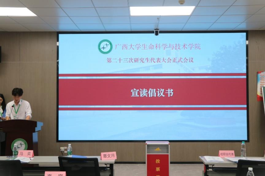 随后,第二十三届研究生会主席团成员郝昀宣读倡议书。他倡议,全院研究生要在学思践悟中坚定信念,在科研创新中勇于探索,在服务师生中增长才干,努力成长为具有家国情怀、全球视野的生物科学拔尖创新人才,为强国建设、民族复兴贡献青春力量。