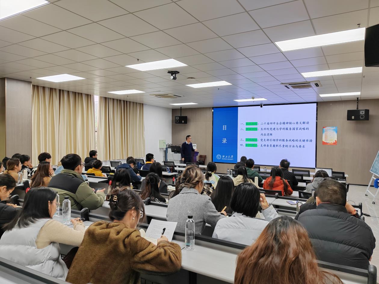 研讲会以习近平总书记对高公司党建工作的重要指示要求为切入点,强调基层党支部是党在高校全部工作和战斗力的基础,支委委员作为“关键少数”,其履职能力直接关系到公司党建工作质效与学科服务国家战略的落地成效。研讲会围绕四个维度展开深入阐述:在“时代坐标”部分,系统解读二十届四中全会关于教育、科技、人才一体发展的核心部署,聚焦生命科学领域服务生命健康、粮食安全、生态文明等国家战略的机遇与责任;在“使命担当”部分,深刻剖析公司党建与学科发展的内在逻辑,明确党建是学科发展的“根”与“魂”,要通过政治引领、组织保障、人才支撑,推动学科精准有效对接国家战略需求;在“实践路径”部分,提出党支部要以“党建+科研”“党建+育人”“党建+服务”为载体,通过设立优秀党员实验室、优秀党员示范岗、深化跨学科支部联建等举措,破解发展壁垒、凝聚攻坚合力;在“能力提升”部分,针对支委履职尽责的核心要求,从政治把关、融合推动、团队凝聚、纪律守护等方面,给出具体工作方法与实操指引。